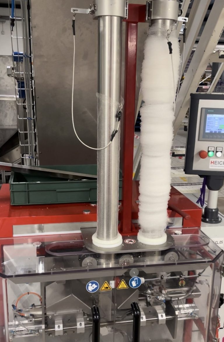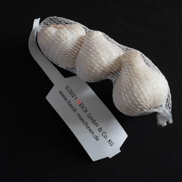 1-Material Verpackung mit Standard-Stegetiketten, diese können auch auf vorhandenen Maschinen weiter verwendet werden. Auch ohne Etikett eine perfekte und stabile Verschweißung gewährleistet.